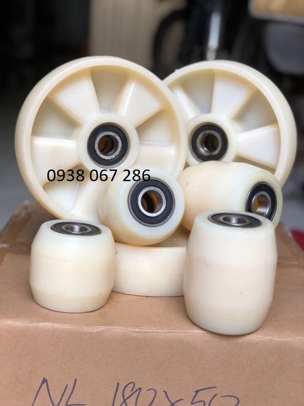 Bánh xe nâng tay thấp Nylon trắng 70x80mm, 80x90mm, 180x50mm, 60x70mm, 70x90mm.....